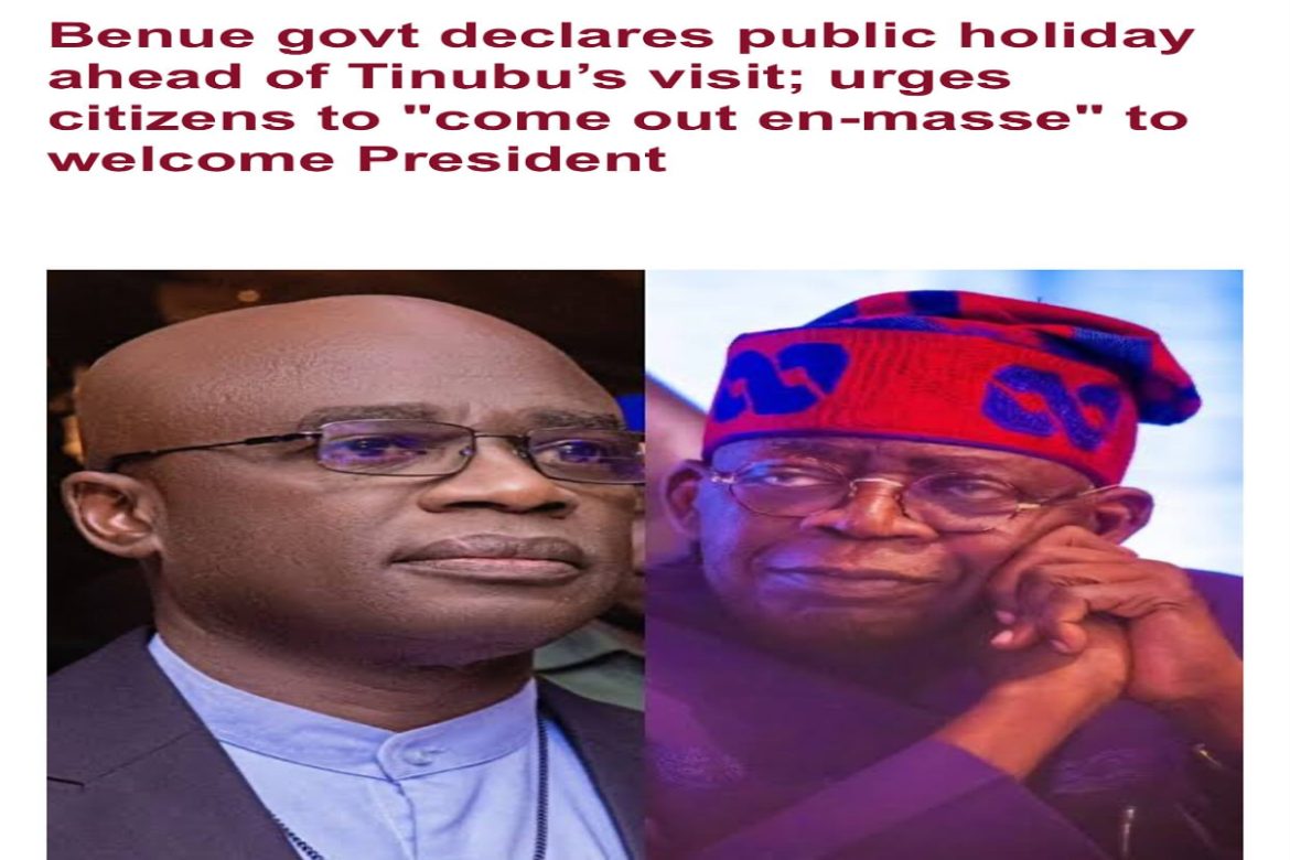Benue Declares Public Holiday Ahead of President Tinubu’s Visit Over Mass Killings