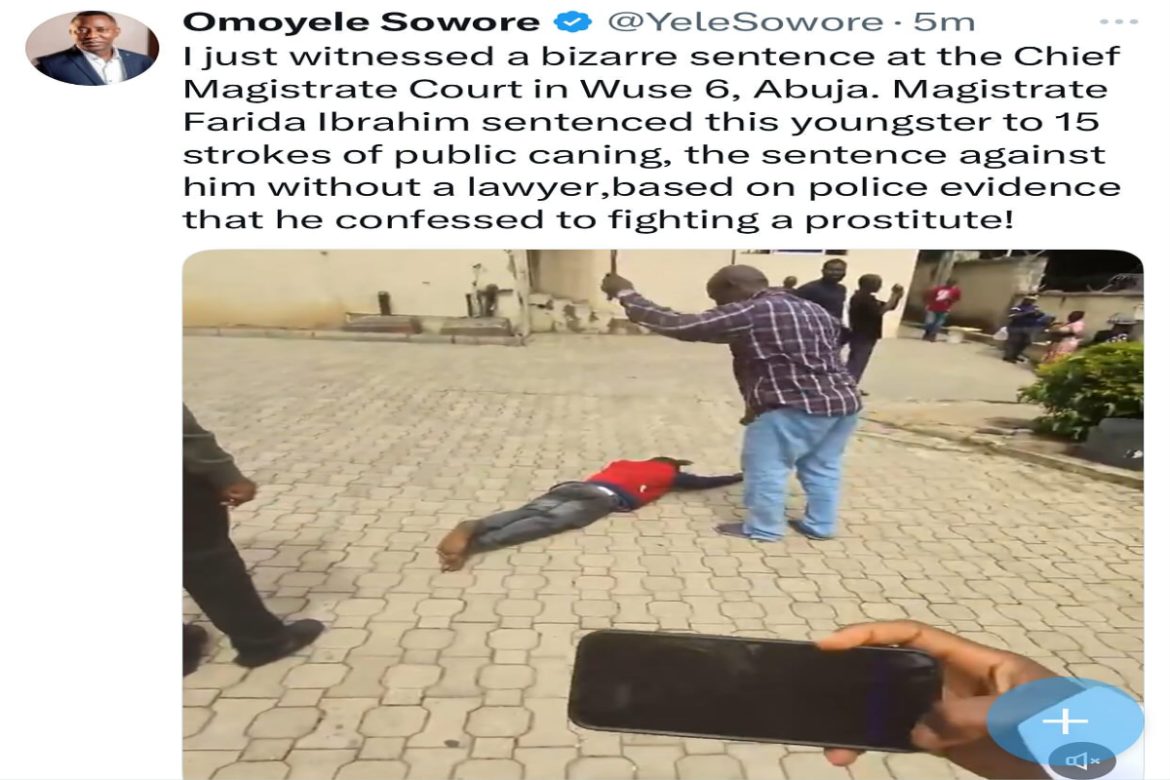 Human rights activist and former presidential candidate Omoyele Sowore has strongly condemned a court ruling that sentenced a young man to 15 strokes of the cane for allegedly engaging in a fight with a sex worker. The incident, which reportedly occurred earlier this week, has reignited a national conversation about the place of corporal punishment in Nigeria’s judicial system.